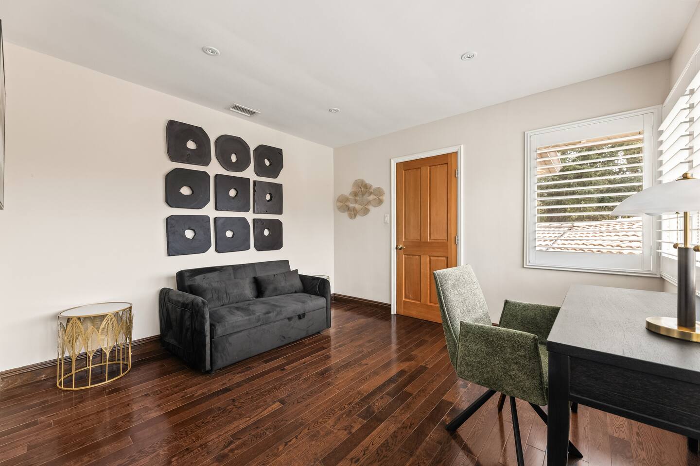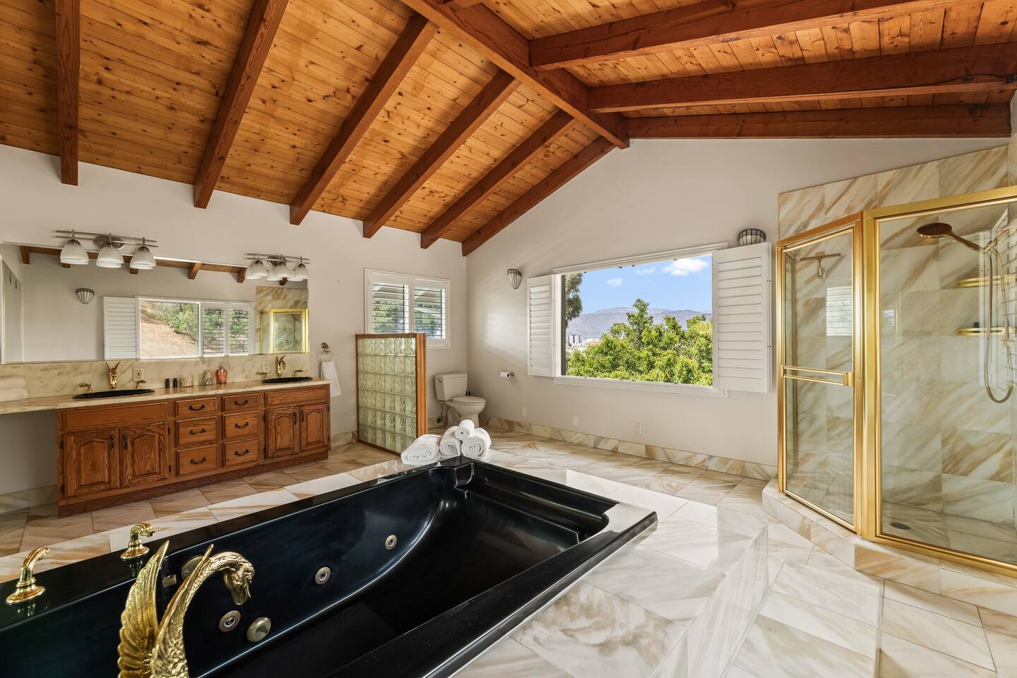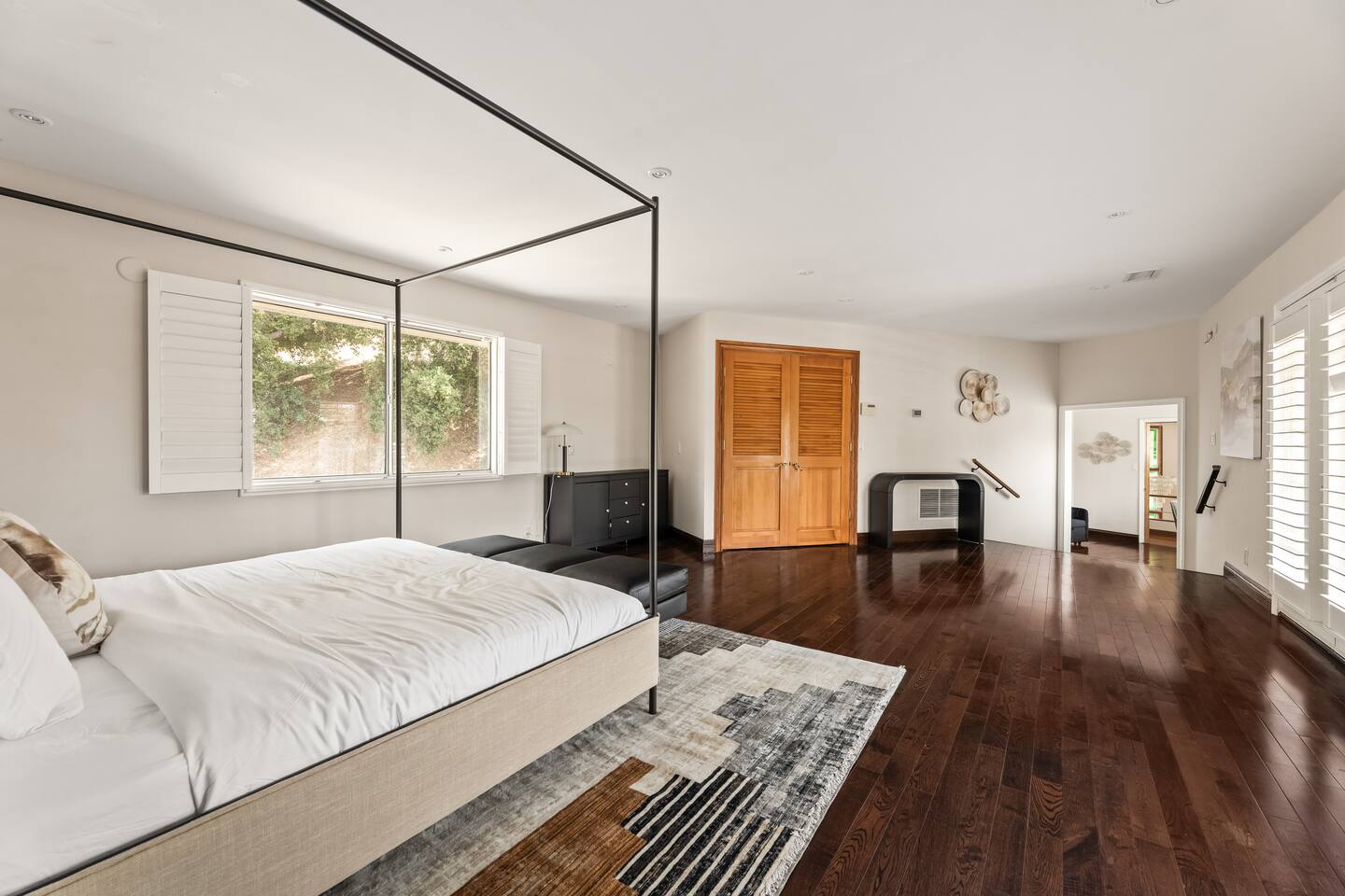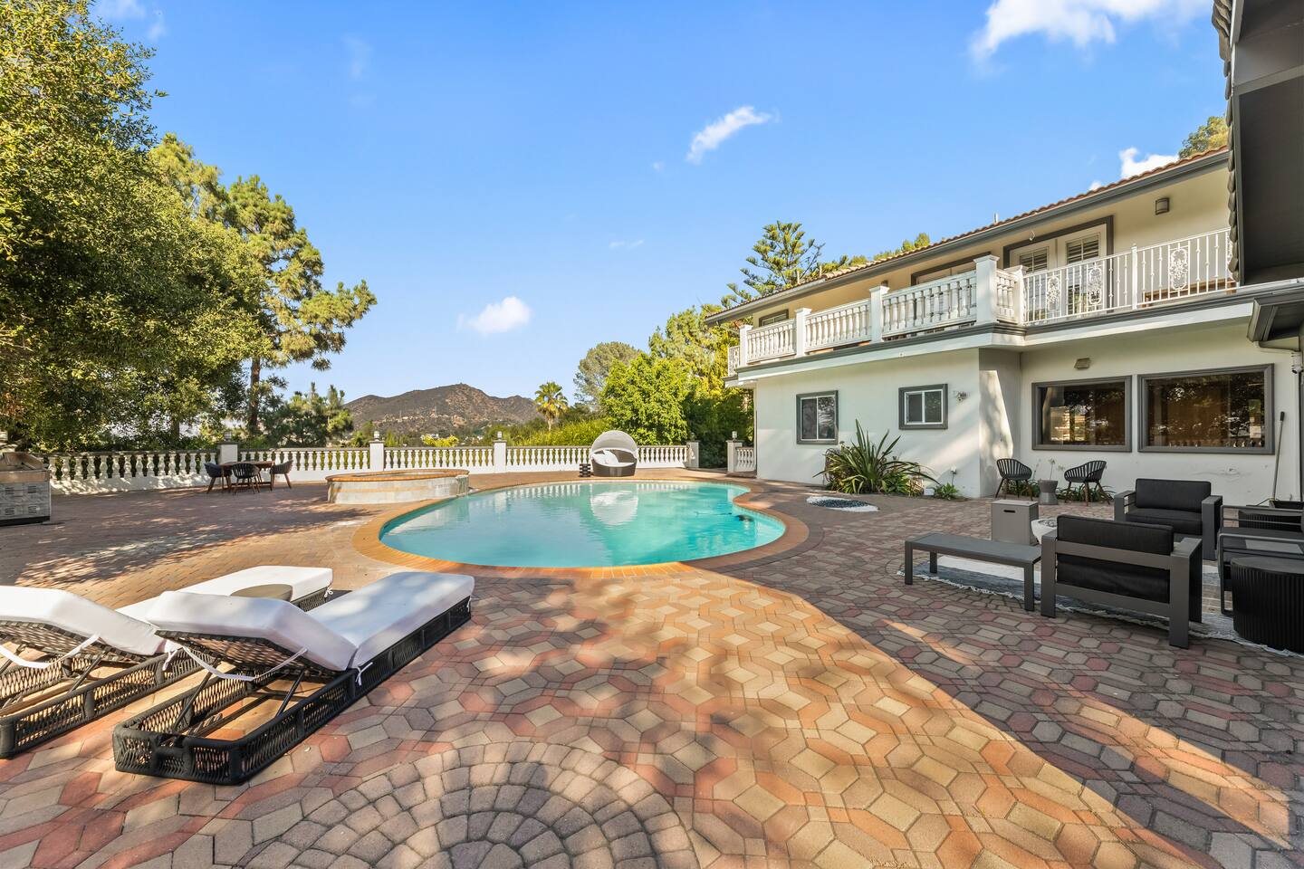 Step into an expansive backyard featuring a sparkling pool and spa, perfectly set against breathtaking vistas—ideal for peaceful relaxation or elevated entertaining. You'll enjoy total privacy while being minutes from the best restaurants, shopping, nightlife, and attractions in Hollywood and Studio City. Your private hillside escape is just a click away — see details below! ★☆ NEARBY ATTRACTIONS & LANDMARKS ☆★ .☛ 0.8 mi – Universal CityWalk Hollywood .☛ 0.8 mi – Universal Studios Hollywood .☛ 2.4 mi – Hollywood Bowl .☛ 2.5 mi – Lakeside Golf Club .☛ 3.0 mi – Runyon Canyon Park .☛ 3.3 mi – Hollywood Walk of Fame .☛ 3.7 mi – Warner Bros Studio Tour Hollywood .☛ 4.9 mi – Paramount Pictures Studio Tour .☛ 6.1 mi – Los Angeles Zoo .☛ 6.7 mi – La Brea Tar Pits and Museum .☛ 7.3 mi – Griffith Observatory ★☆ BEDROOM ARRANGEMENT☆★ 🛏️ BR1: 1 Queen Bed 🛏️ BR2: 1 Queen Bed 🛏️ BR3: 1 King Bed 🛏️ BR4: 1 Bunk Bed (Queen-over-Queen) 🛋️ Office: 1 Sleeper Sofa (off the primary bedroom) ★☆ LIVING ROOM ☆★ Step into a cozy, artful space designed to inspire. Spin vinyl on the record player, play a tune on the grand piano, or stream your favorite shows on the smart TV (just log in with your own account). Whether you're lounging solo or entertaining guests, this living area blends warmth and creativity with plenty of room to relax. ★☆ OFFICE & GYM ROOM ☆★ Need to get work done? The dedicated office, tucked just off the primary bedroom, offers a sleeper sofa, great lighting, and strong Wi-Fi—ideal for remote work or an additional guest. Head downstairs to the private gym, located in the home’s lower level. Equipped with essential workout gear, a TV for motivation, and a juice bar for post-sweat refreshments, it’s your personal wellness zone. ★☆ KITCHEN & DINING ☆★ Whether you're brewing coffee or prepping a full meal, the kitchen is fully stocked with cookware, utensils, and modern appliances. Start your day at the breakfast bar or gather for dinner in a space that’s equal parts functional and stylish. ★☆ OUTDOOR SPACE ☆★ Enjoy the best of California living in this expansive outdoor setting. Lounge by the pool, soak in the hot tub, or grill in the outdoor kitchen. Dine alfresco, unwind by the fire pit, or take in the views from the balcony. With driveway parking for 5+ vehicles and easy street parking nearby, plus security cameras for peace of mind, this space is built for both comfort and style.