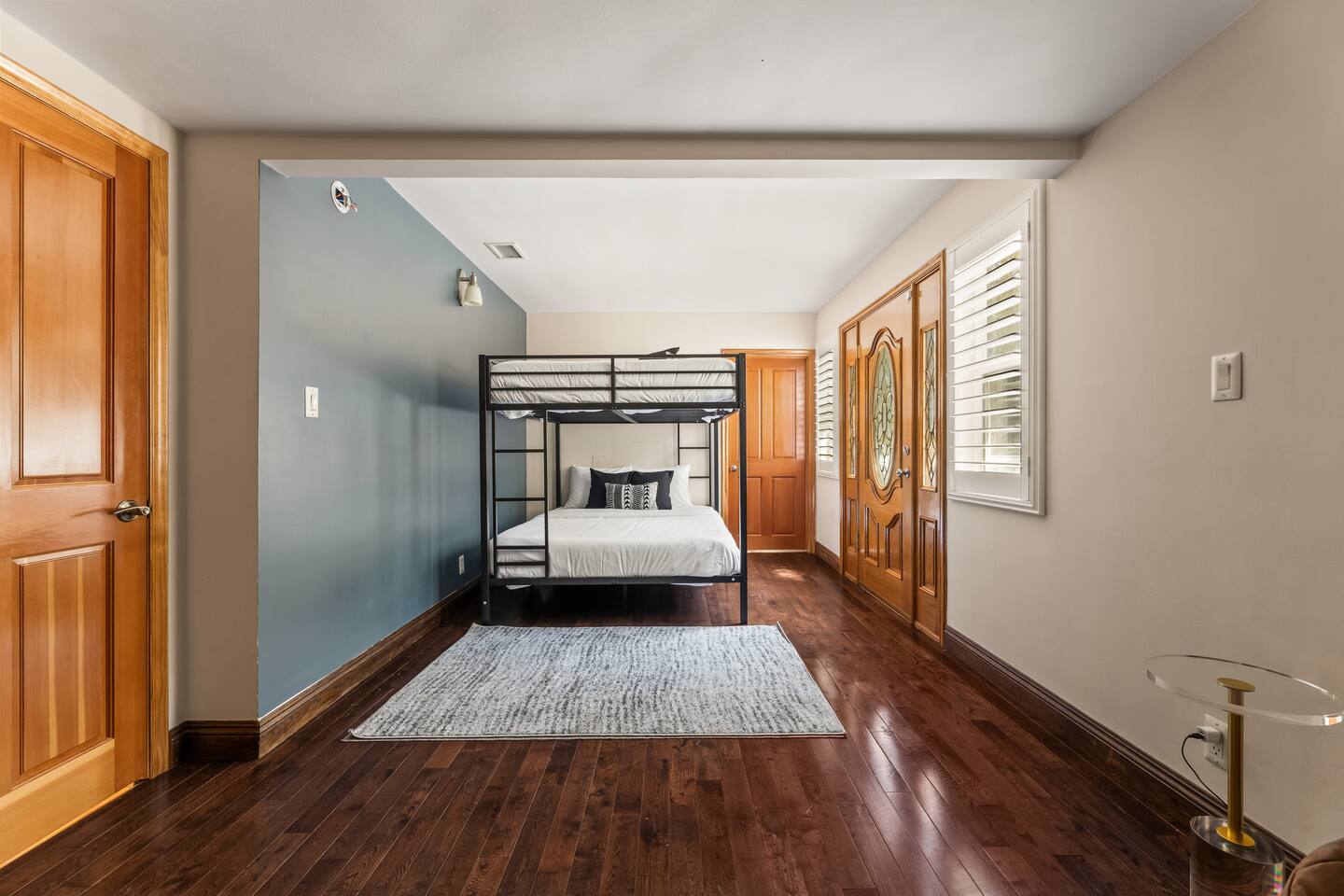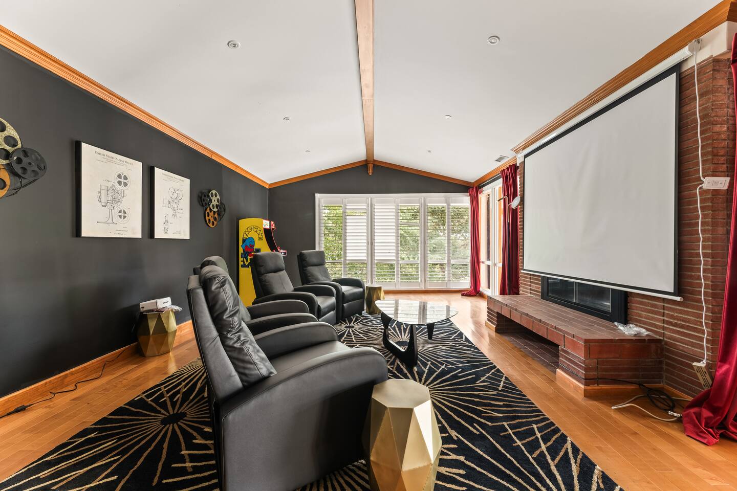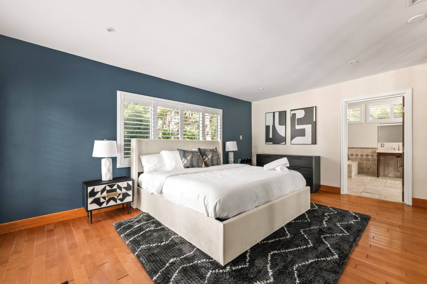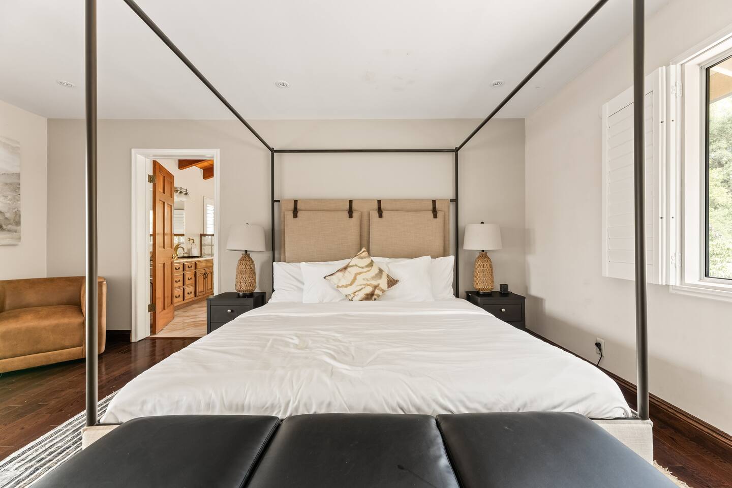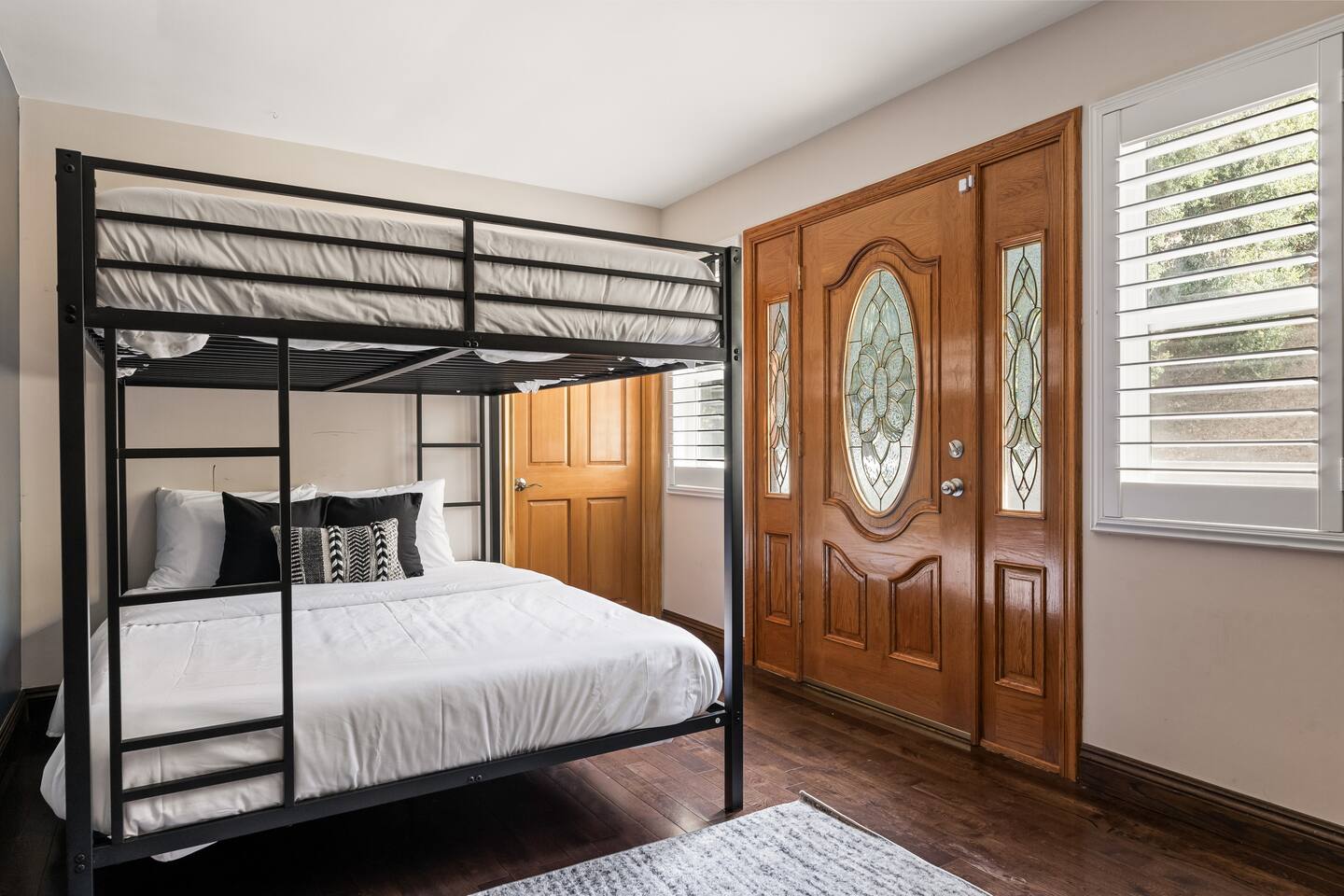 Step into an expansive backyard featuring a sparkling pool and spa, perfectly set against breathtaking vistas—ideal for peaceful relaxation or elevated entertaining. You'll enjoy total privacy while being minutes from the best restaurants, shopping, nightlife, and attractions in Hollywood and Studio City. Your private hillside escape is just a click away — see details below! ★☆ NEARBY ATTRACTIONS & LANDMARKS ☆★ .☛ 0.8 mi – Universal CityWalk Hollywood .☛ 0.8 mi – Universal Studios Hollywood .☛ 2.4 mi – Hollywood Bowl .☛ 2.5 mi – Lakeside Golf Club .☛ 3.0 mi – Runyon Canyon Park .☛ 3.3 mi – Hollywood Walk of Fame .☛ 3.7 mi – Warner Bros Studio Tour Hollywood .☛ 4.9 mi – Paramount Pictures Studio Tour .☛ 6.1 mi – Los Angeles Zoo .☛ 6.7 mi – La Brea Tar Pits and Museum .☛ 7.3 mi – Griffith Observatory ★☆ BEDROOM ARRANGEMENT☆★ 🛏️ BR1: 1 Queen Bed 🛏️ BR2: 1 Queen Bed 🛏️ BR3: 1 King Bed 🛏️ BR4: 1 Bunk Bed (Queen-over-Queen) 🛋️ Office: 1 Sleeper Sofa (off the primary bedroom) ★☆ LIVING ROOM ☆★ Step into a cozy, artful space designed to inspire. Spin vinyl on the record player, play a tune on the grand piano, or stream your favorite shows on the smart TV (just log in with your own account). Whether you're lounging solo or entertaining guests, this living area blends warmth and creativity with plenty of room to relax. ★☆ OFFICE & GYM ROOM ☆★ Need to get work done? The dedicated office, tucked just off the primary bedroom, offers a sleeper sofa, great lighting, and strong Wi-Fi—ideal for remote work or an additional guest. Head downstairs to the private gym, located in the home’s lower level. Equipped with essential workout gear, a TV for motivation, and a juice bar for post-sweat refreshments, it’s your personal wellness zone. ★☆ KITCHEN & DINING ☆★ Whether you're brewing coffee or prepping a full meal, the kitchen is fully stocked with cookware, utensils, and modern appliances. Start your day at the breakfast bar or gather for dinner in a space that’s equal parts functional and stylish. ★☆ OUTDOOR SPACE ☆★ Enjoy the best of California living in this expansive outdoor setting. Lounge by the pool, soak in the hot tub, or grill in the outdoor kitchen. Dine alfresco, unwind by the fire pit, or take in the views from the balcony. With driveway parking for 5+ vehicles and easy street parking nearby, plus security cameras for peace of mind, this space is built for both comfort and style.