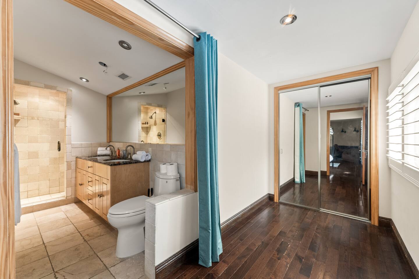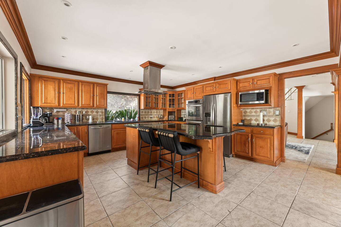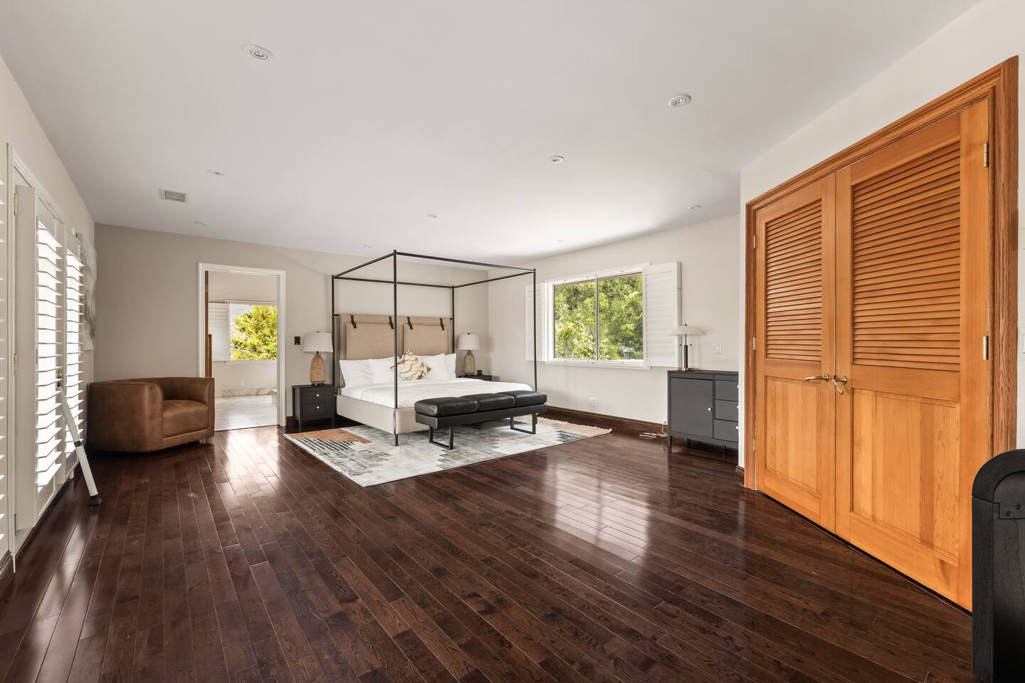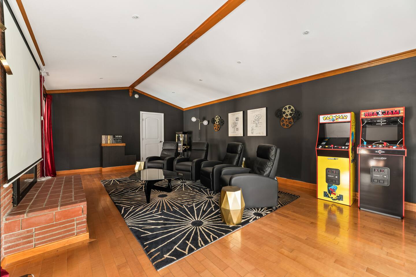 Step into an expansive backyard featuring a sparkling pool and spa, perfectly set against breathtaking vistas—ideal for peaceful relaxation or elevated entertaining. You'll enjoy total privacy while being minutes from the best restaurants, shopping, nightlife, and attractions in Hollywood and Studio City. Your private hillside escape is just a click away — see details below! ★☆ NEARBY ATTRACTIONS & LANDMARKS ☆★ .☛ 0.8 mi – Universal CityWalk Hollywood .☛ 0.8 mi – Universal Studios Hollywood .☛ 2.4 mi – Hollywood Bowl .☛ 2.5 mi – Lakeside Golf Club .☛ 3.0 mi – Runyon Canyon Park .☛ 3.3 mi – Hollywood Walk of Fame .☛ 3.7 mi – Warner Bros Studio Tour Hollywood .☛ 4.9 mi – Paramount Pictures Studio Tour .☛ 6.1 mi – Los Angeles Zoo .☛ 6.7 mi – La Brea Tar Pits and Museum .☛ 7.3 mi – Griffith Observatory ★☆ BEDROOM ARRANGEMENT☆★ 🛏️ BR1: 1 Queen Bed 🛏️ BR2: 1 Queen Bed 🛏️ BR3: 1 King Bed 🛏️ BR4: 1 Bunk Bed (Queen-over-Queen) 🛋️ Office: 1 Sleeper Sofa (off the primary bedroom) ★☆ LIVING ROOM ☆★ Step into a cozy, artful space designed to inspire. Spin vinyl on the record player, play a tune on the grand piano, or stream your favorite shows on the smart TV (just log in with your own account). Whether you're lounging solo or entertaining guests, this living area blends warmth and creativity with plenty of room to relax. ★☆ OFFICE & GYM ROOM ☆★ Need to get work done? The dedicated office, tucked just off the primary bedroom, offers a sleeper sofa, great lighting, and strong Wi-Fi—ideal for remote work or an additional guest. Head downstairs to the private gym, located in the home’s lower level. Equipped with essential workout gear, a TV for motivation, and a juice bar for post-sweat refreshments, it’s your personal wellness zone. ★☆ KITCHEN & DINING ☆★ Whether you're brewing coffee or prepping a full meal, the kitchen is fully stocked with cookware, utensils, and modern appliances. Start your day at the breakfast bar or gather for dinner in a space that’s equal parts functional and stylish. ★☆ OUTDOOR SPACE ☆★ Enjoy the best of California living in this expansive outdoor setting. Lounge by the pool, soak in the hot tub, or grill in the outdoor kitchen. Dine alfresco, unwind by the fire pit, or take in the views from the balcony. With driveway parking for 5+ vehicles and easy street parking nearby, plus security cameras for peace of mind, this space is built for both comfort and style.